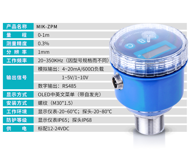 米科MIK-ZPM小盲區超聲波液位計