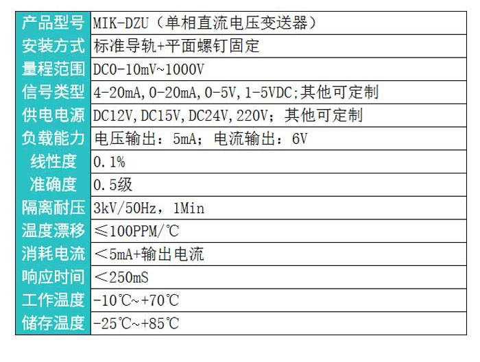 米科MIK-DZU直流電壓變送器