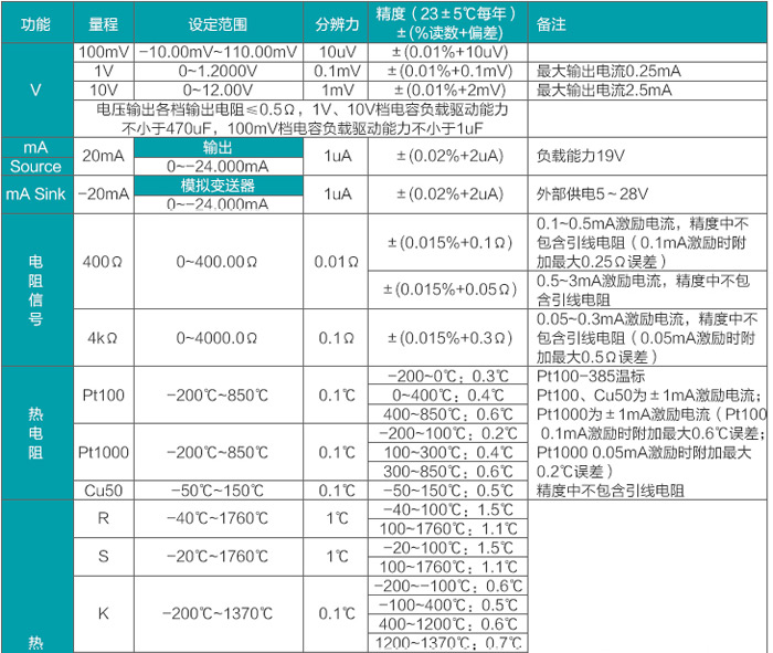 適用場合:信號發生器具有多種信號的測量和輸出功能,包括電壓、電流(含電子負載)、電阻、熱電偶分度值(可選擇冷端補償)、熱電阻分度值、脈沖頻率、配電等信號。操作簡單,待機時間長,精度高,并且具有可編程輸出的功能。