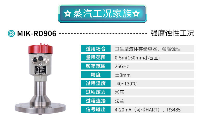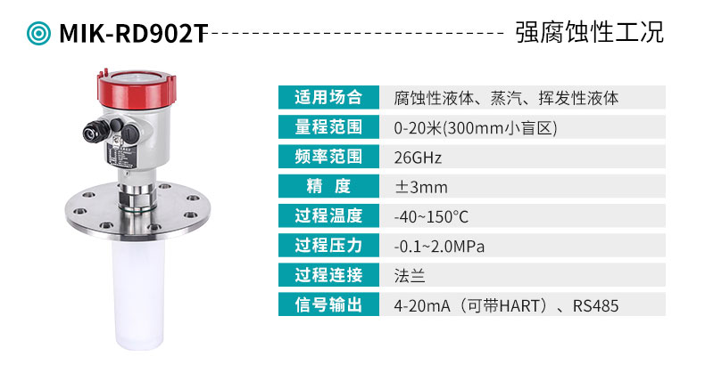 米科MIK-RD902T/906高頻雷達(dá)液位計,26G高頻系列可用于需要發(fā)射角度小精度高的場合。